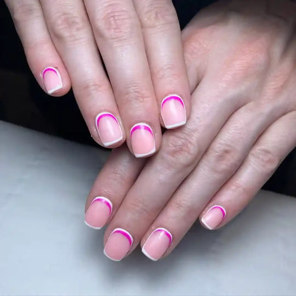 These short nails keep things simple with a nude base and bright pink French tips outlined in white. The pop of color adds a fresh, modern feel without overpowering the look. This design is great for February if you want something clean but still playful. Perfect for work-friendly Valentine nails that don’t feel boring.