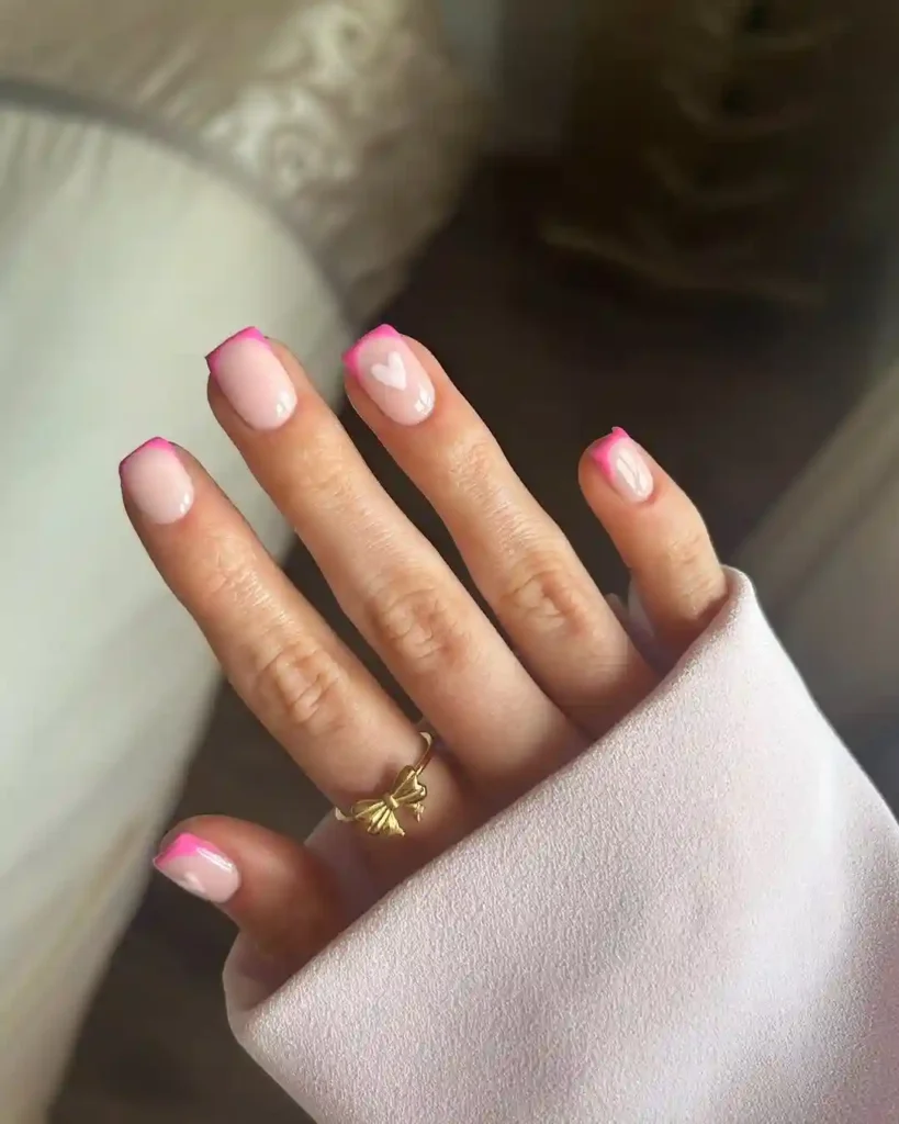 19. Pink French Tips with a Tiny Heart Accent