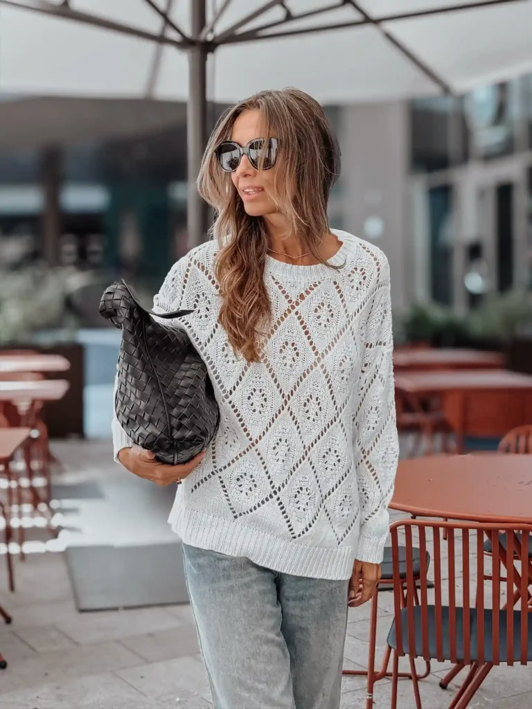 This look blends texture and simplicity in a way that feels very wearable. The lightweight knit sweater with subtle patterns adds interest without being too bold, while the relaxed denim keeps things grounded and easy. It’s the kind of outfit that looks styled but still feels comfortable for everyday wear.
