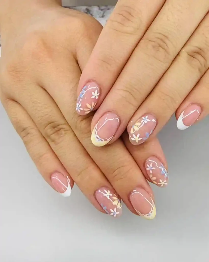 23.Dainty Pastel Floral Almond Nails