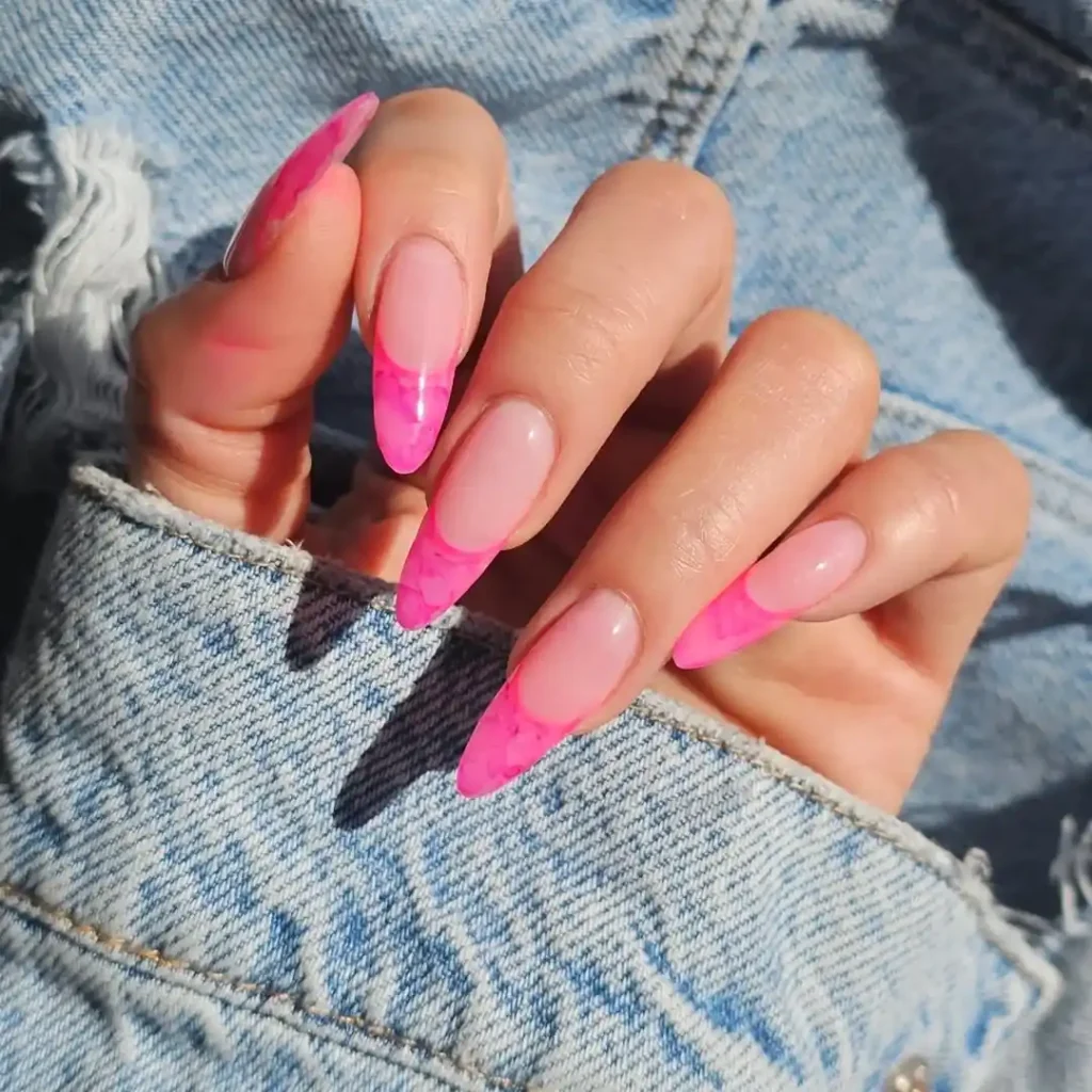 15.Hot Pink Marble French Tips