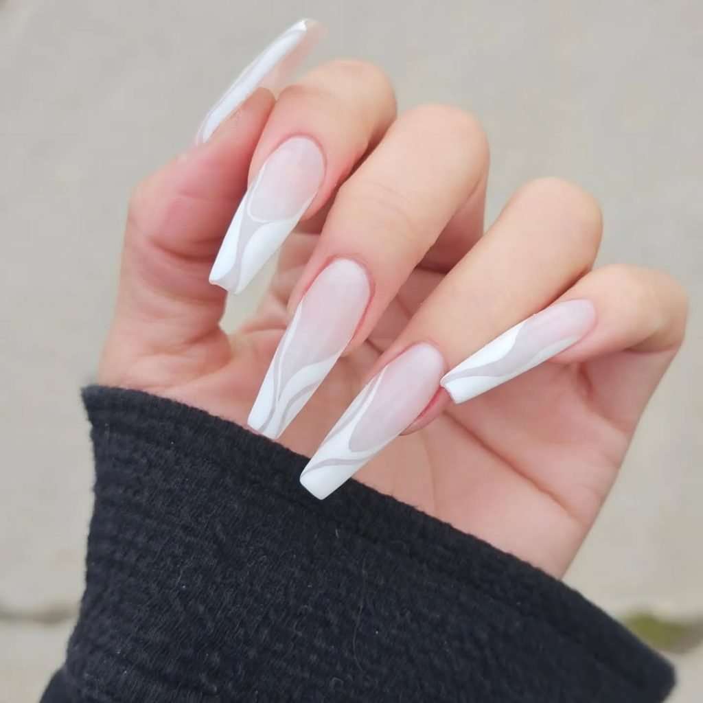 22.Minimal White Swirl Coffin Nails