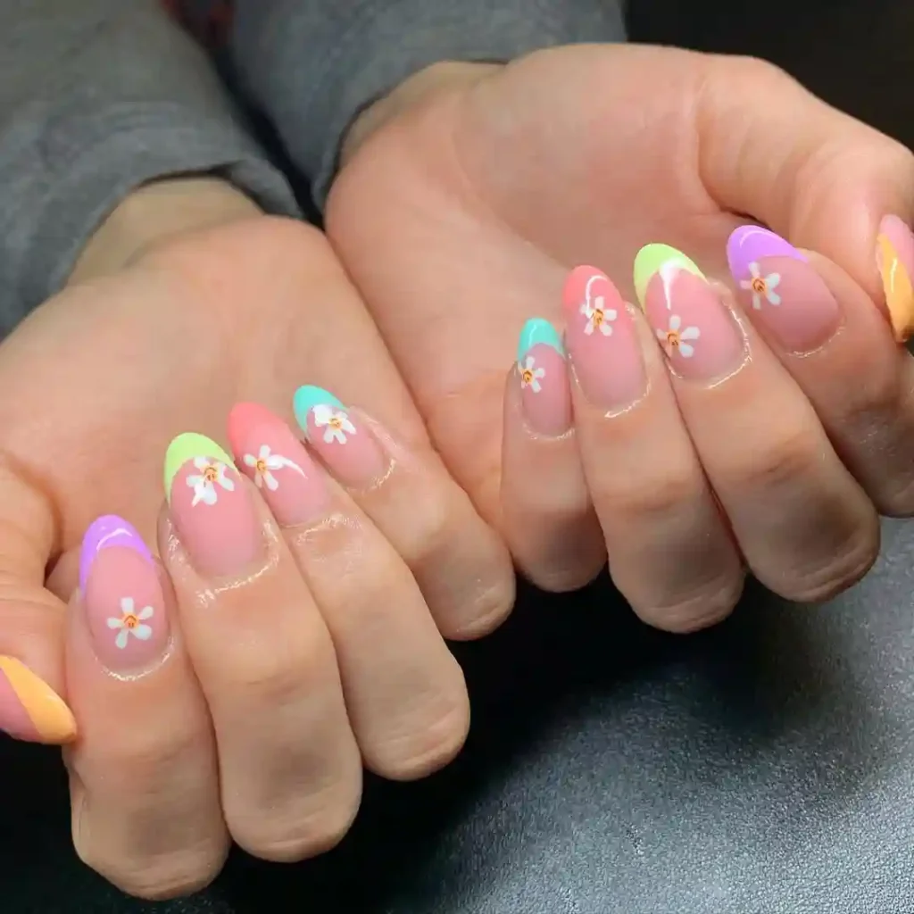 12.Rainbow French Tips with Daisies
