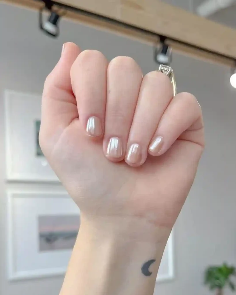 Sometimes less is more. These short nails use a subtle champagne chrome finish that shines beautifully in the light. The reflective effect adds elegance without needing any extra detail. This design is perfect for spring professionals who want something fresh yet office-friendly. It’s versatile enough to pair with casual outfits or more formal looks, making it a timeless spring manicure idea.