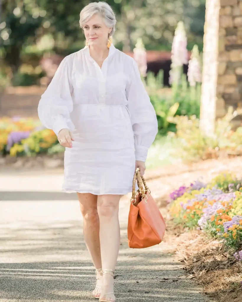 This outfit feels light, relaxed, and perfect for hot days. The loose white mini dress offers great airflow, while the long sleeves add a bit of coverage without making it feel heavy.