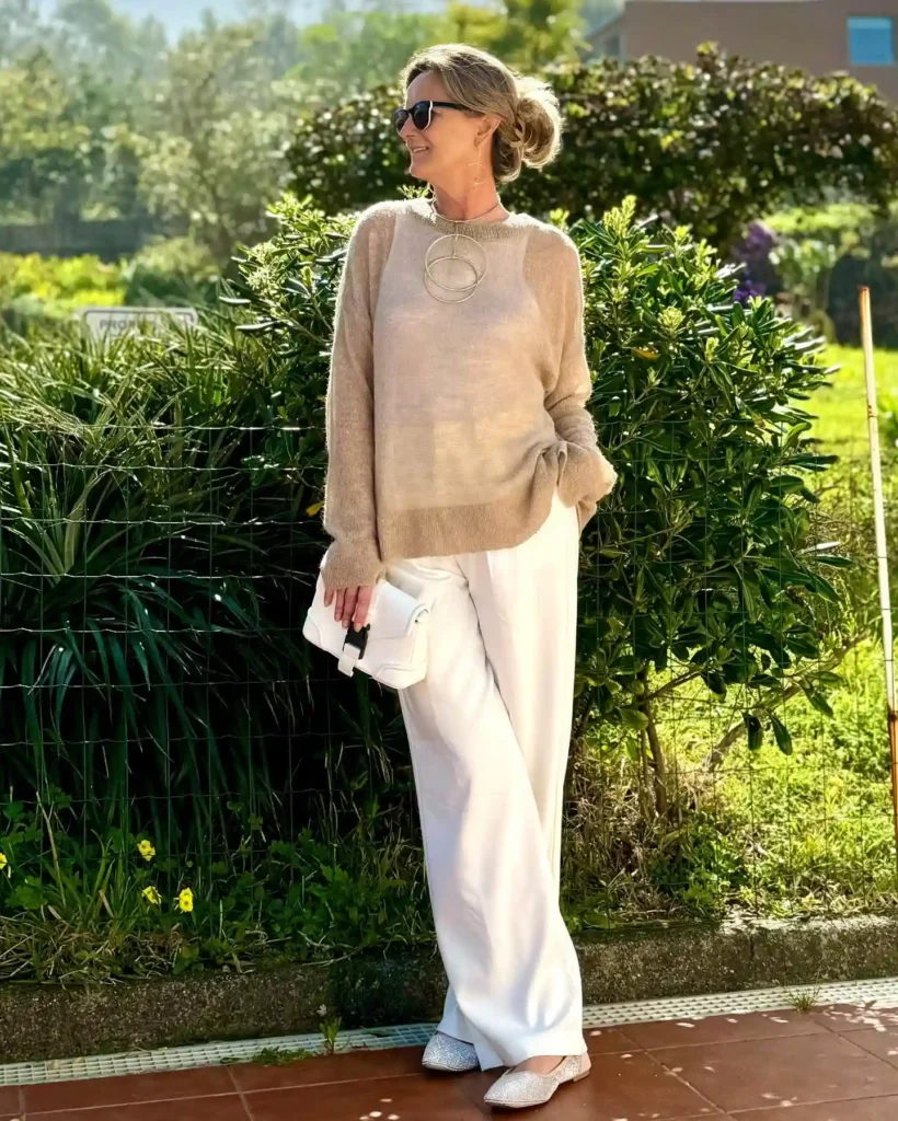 - The Trousers: Wide-leg white trousers are a travel essential; choose a fabric with a bit of weight to ensure they aren’t see-through and hang elegantly.