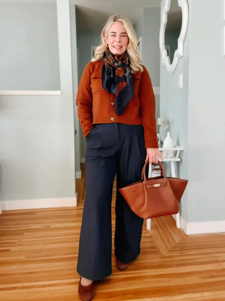 Combining a chunky cable-knit turtleneck with tailored wide-leg trousers in the same hue creates a sophisticated “power” silhouette. Draping a matching blazer over your shoulders adds a final layer of boss-lady polish.